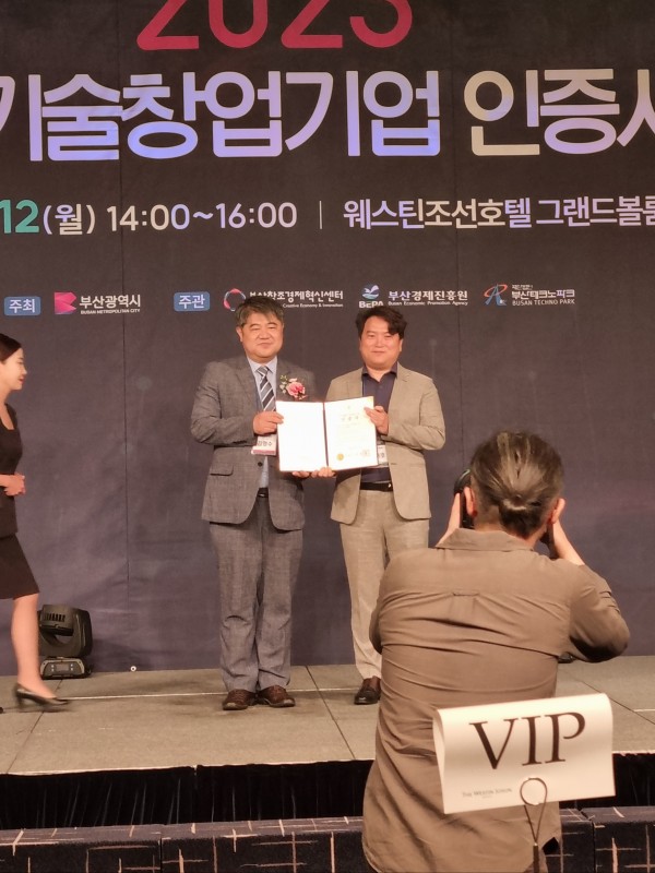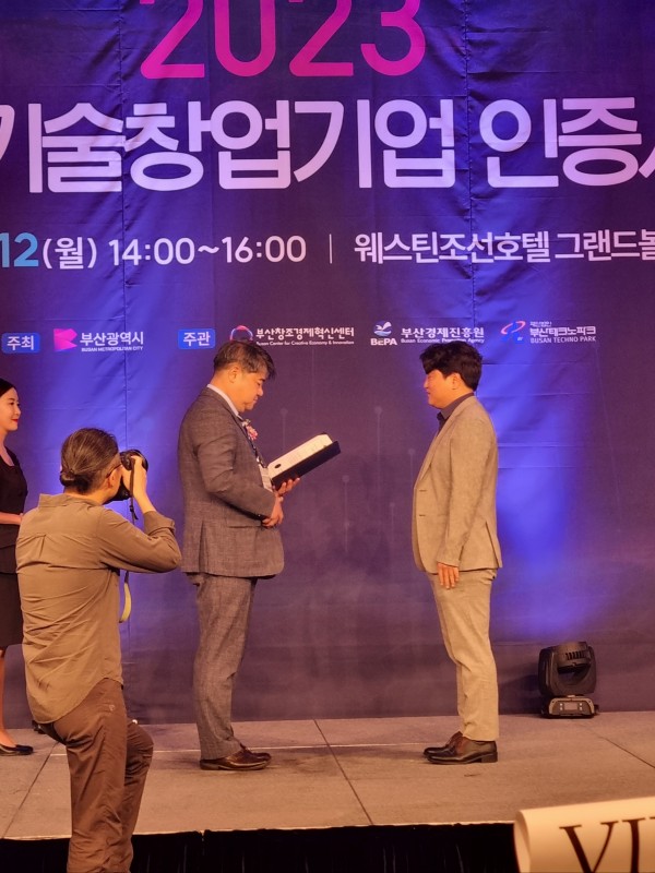 2023년 부산 대표 기술창업기업에 선정되어 수여식을 진행하였습니다!